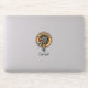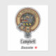Insignia de Campbell escudo rodeada de una correa y hebilla sobre fondo tartán. Texto personalizado.