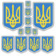 Escudo de armas patriótico ucraniano. Escudo de armas de Ucrania. Menos escudo de armas de Ucrania, el llamado Tryzub. Un símbolo de tridente estilizado en oro sobre un escudo de fondo azul.