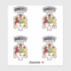 Diseñados en Irlanda, estos pegatinas muestran el nombre de la familia en inglés con su traducción al gaélico irlandés debajo y el significado del nombre bajo el escudo de armas.