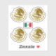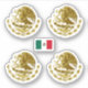 Cuatro pegatinas vinílicos cortados por Personalizados con el escudo de armas de los Estados Unidos de México -una versión dorada, con un águila dorada en el centro; y un pegatina con la bandera mexicana