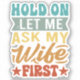 Pegatina Espera, déjame preguntarle a mi esposa primero - D