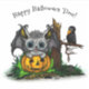Pegatina Esperando Halloween , Cute Bat y Raven