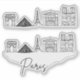 Esta hoja de pegatina presenta un ilustracion de arte en línea de silueta del perfil de París.