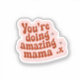 ¡Los pegatinas son perfectos para decorar tu laptop, funda de teléfono, botella de agua, periódico y mucho más! Un pegatina con un matiz rosado y texto rojo. El texto dice: 'Estás haciendo asombrosa mamá .x'