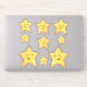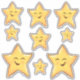 Conjunto de nueve felices estrellas amarillas cada una con una cara sonriente linda.