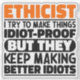 Funny Ethicist Dice "Eticista Intento Hacer Que Las Cosas Sean Pruebas Idiotas Pero Siguen Haciendo Mejores Idiotas". Agarra este gracioso diseño ético como un regalo gracioso para una madre, papá o amigo formidable.