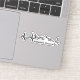 A mountain biking themed heartbeat sticker noting a popular location to mountain bike of Evergreen, Colorado