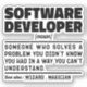 Funny Software Developer Dice "Desarrollador De Software Alguien Que Resuelve Un Problema Que No Sabía Que Tenía De Una Manera Que No Podía Entender". Agarra este divertido diseño de Software Developer como un regalo divertido para una madre, padre o amigo formidable.