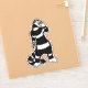 Pegatina de gato espeluznante con un dibujo de tinta que representa un extraño gatito rayado en blanco y negro con el cuello largo sosteniendo una máscara de cráneo. Parece que uno de sus guantes está fuera y su mano de esqueleto se muestra desde su manga. Me hace preguntarme si es mucho más una criatura espeluznante de lo que aparenta ser en Halloween.