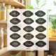 En este conjunto hay 15 pegatinas totales con etiqueta de vinilo que son lo suficientemente grandes como para ser usados en contadores, estantes y estantes, y todos pueden ser usados "tal cual" o personalizados para personalizar mejor su propio contenido de despensa. Color de la forma ovalada del tablero de anuncios con texto de escritura en blanco