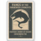 Un inquietante poster de estilo vintage con los emblemáticos "Fangs of the Forbidden Currents", que representan las ominosas profundidades ligadas a la Orden Esotérica de Dagon en Innsmouth. La silueta oscura de un depredador de aguas profundas brilla con ojos verdes espeluznantes y colmillos de afeitar, enmarcada en un diseño de arco místico. Perfecto para los amantes del horror lovecraftiano y la mitología del mar profundo.