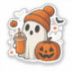 Pegatina Fantasma de Halloween con calabaza y bebida