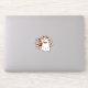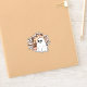 Fantasma y pegatina. Decoración estética de temporada de otoño para los amantes del barista y del café. Ilustracion beige, marrón y rosa con un fantasma adorable sosteniendo una taza de café. Acogedores pegatinas estéticos de otoño.