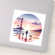 Este tranquilo diseño costero captura un momento de sol sereno en el que un padre, un niño y un perro pasean por la arena reflexiva y húmeda, enmarcada a lo lejos por un brillante faro. La composición circular y los suaves tonos pastel evocan la calma y la nostalgia, mientras que los pájaros desfilan por un cielo de ensueño de lavanda y tonos coralinos. La simetría de las reflexiones realza el ambiente tranquilo, convirtiéndolo en una metáfora visual perfecta para recuerdos preciados y una conexión tranquila. Ideal para evocar sentimientos de calidez, familia y escapada costera, esta escena mezcla ilustracion digital pintoresco con una estética minimalista y moderna. Muéstralo como un recordatorio diario de las simples alegrías de la vida y los ritmos suaves de la naturaleza. La IA generó obras de arte.