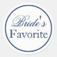 "La novia favorita" a Pegatina en azul marino. Pegatinas para cualquiera de sus ocasiones bodas - fiesta de compromiso, cena de ensayo, ceremonia, hora de cóctel, recepción de bodas, brunch dominical, ducha de novia, fiesta de soltera, fiesta de gallinas y más! Muestra su bocadillo y su tentempié favorito o traza como un favor para tus invitados. Disponible en una variedad de tamaños colores y fuentes