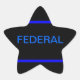 Pegatinas de la policía federal (LEO) con una delgada línea azul contra un fondo negro y la palabra FEDERAL en azul.