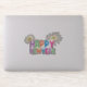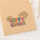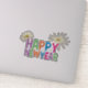 pegatina vinílico cortado por personalizados de 6" x 6" con una imagen de "Feliz Año Nuevo" impresa en letras de bloques multicolores y dos fuegos artificiales de oro. Vea el pegatina cuadrado, el confetti, la etiqueta y el papel de envoltura. Vea toda la colección de Pegatinas de Año Nuevo en la sección VACACIONES.
