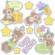 Estos son lindos pegatinas felices de cumpleaños que tienen un pequeño mono marrón celebrando el cumpleaños de su hijo. Se incluyen cuatro pegatinas de monos diferentes, con texto de personalizable en cada uno de ellos. Junto con los monos hay estrellas doradas, globos, paquetes de regalos y texto que dice "Feliz Cumpleaños". Cuidada por el cumpleaños de cualquier niño pequeño. *Crédito de diseño para imágenes de desecho.