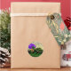 Feliz cumpleaños Pegatina con diseño de tortuga espumosa. Tortuga verde con hongo morado y chispas. Personaliza el nombre del niño.
