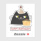 Gracioso, personalizado, gato negro con gorra fiesta. Buen pegatina de cumpleaños.