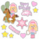 ¡A cualquier niña pequeña que ame los caballos y sueña con ser una vaquera le encantará este conjunto de pegatinas! La pequeña vaquera usa rosa y monta su caballo marrón. En otra imagen lleva un lariat. Hay una placa de sheriff rosa con su nombre, estrellas amarillas y corazones rosados. Texto estilizado que dice "Niñita feliz cumpleaños" y "¡Giddyup!" ¡Qué lindo! *Crédito de diseño para imágenes de desechos digitales.