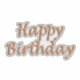 Para una fiesta de cumpleaños glamorosa y femenina. El texto: Feliz cumpleaños escrito en oro rosa con un gran tipo de letra, guión.