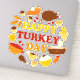 ¡Feliz Día de Turquía! Este bonito diseño tiene muchos platos tradicionales del día de Acción de Gracias, como tarta de calabaza, pavo, batatas con malvaviscos, arándanos, puré de papas, rollos y más. Deséenle a todos un Feliz Día de Acción de Gracias con este diseño en un pegatina de contorno personalizado para su auto o pegue en cualquier parte. ¡Es un diseño divertido y festivo para cualquiera que ame una fiesta de Acción de Gracias!
