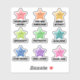 El conjunto de 9 pegatinas estrellas de corte de besos en todos los tonos del arcoiris, desde un cálido rosa al naranja al amarillo a la lima, al verde a verde azulado a azul a morado, a un refrescante tono de rosa con palabras motivadoras para dar a tus estudiantes su excelente trabajo. El texto es personalizable en funda que quieres cambiar el texto inspirador.