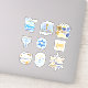 Hoja de pegatinas de Hanukkah. Estos pegatinas son perfectos para sus necesidades en la fabricación de tarjetas con niños o para enviar a la familia. Se vuelven esenciales cuando se hacen tarjetas de vacaciones para donaciones a adultos mayores y hospitales. Son hermosas con imágenes que celebran el gran milagro que ocurre. son coloridas y hasta puedes elegir el tamaño que te conviene. Es bueno dar a los nietos o ponerlos en sus notas y adornar botellas de agua. A veces no es fácil encontrar pegatinas de Hanukkah, por eso puse esta hoja con 6 hermosos. Expresan "Feliz Hanukkah, paz, luz, alegría, y frases graciosas como Let's Get Lit and Love You Latkes". Los colores son el blues y el marrón, de la luz a los oscuros y algunos amarillos y beige.