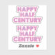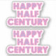 Dos pegatinas diciendo: "Feliz medio siglo"