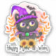 Pegatina Feliz Meow-o-ween-Black Witch Cat