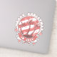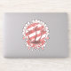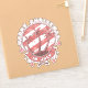 Diseño de texto "Feliz Navidad en julio" de estilo retro con copas de nieve, palmeras y rayas de decoración en rojo y blanco