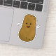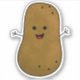 Patata marrón feliz con pequeños puntos negros para los ojos, una gran sonrisa abierta feliz y palos para los brazos.