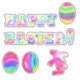 Huevos de color acuático, conejito y letras que dicen FELIZ MÁS RÁPIDO. ¡Excelente para decorar un fiesta! El arte de Cherie