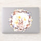 Un solo pegatina de una corona floral amarilla y púrpura con un conejo y daffodils en el centro