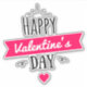 Feliz texto del día de San Valentín con diseño rosa de corazón pequeño.