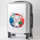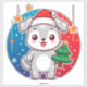 Pegatina Festive Cartoon Puppy With Santa Hat And Snowflake