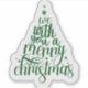 Este alegre pegatina cuadrado presenta un impresionante diseño de árboles de Navidad verde adornado con estrellas y adornos lúdicos.