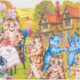 Pegatina con pintura animal de Louis Wain, Gatos relajándose en los jardines en Napsbury (1860-1939). Un gato sonriente echa leche a las tacitas mientras ve a seis gatos más pequeños beber leche, comer dulces y jugar en un jardín. Un regalo maravilloso para los amantes de los gatos y el arte inglés.