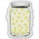 Un frasco de albañil lleno de luciérnagas relucientes arroja una luz cálida y luminosa. La disposición divertida de las luciérnagas crea un efecto llamativo y encantador.