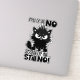 A funny, sarcastic black-and-white graphic design showcases a black cat with frazzled fur and a scowling expression. The black handwritten text says, "First of all, no. Second of all, still no!" Available on a wide variety of products, this design makes a perfect gift for cat lovers.