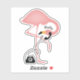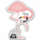 Ilustracion de un flamingo rosado hablando por teléfono rotatorio con el texto "Hola" encima de la cabeza.