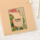 Vinil decal / pegatina de contorno con un flamingo rosa tierno y caprichoso. Rodeado de hojas tropicales verdes y flores de hibisco rojas y amarillas. Un rectángulo con forma de rectángulo, con un gradiente dorado en el centro.