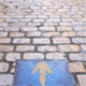 Flecha amarilla que marca el Camino de Santiago, Logroño, La Rioja, España