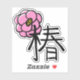 Un pegatina bonito con una flor camellia y el kanji para camellia. Es fácil cambiar el color de la camelia en la pantalla de personalización.