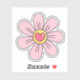Pegatina con un ilustracion personalizado de una flor rosada bonito con un corazón rosa en el centro.
