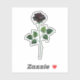 Rosa negro simbólico, dibujado de forma artística, con tallos verdes y hojas sobre fondo blanco. Rosa negro.