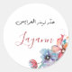 Un magnífico Pegatina Favor para tu fiesta henna, con flores de colores y escritura árabe. Personaliza con el nombre de la novia para tu evento especial. Guión árabe: Traducción de Hennat Zeenet al arayes: la henna de las novias más bellas