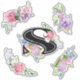 Rocios de moda color agua pastel estilo rosa, rubor y flores de lavanda con letra S personalizado fresco negro.