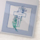 Los deseos de un sacerdote cobran vida con este regalo azul con la cruz florida. Personalizable completo.